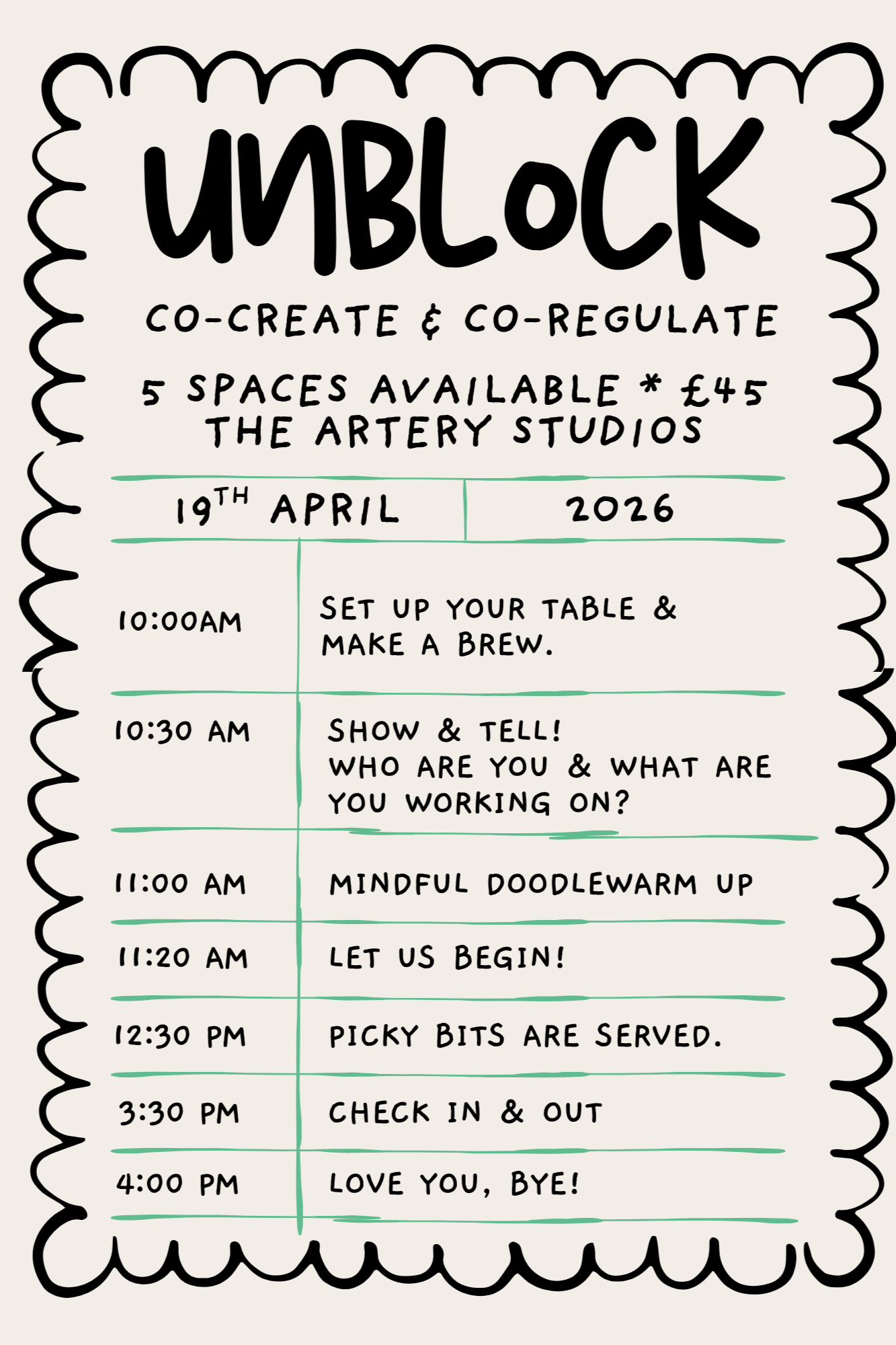SHAKE OFF THE CREATIVE COBWEBS AND SPEND TIME WITH A SMALL GROUP OF ARTISTS AND FINISH THAT PIECE!